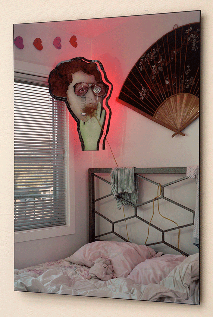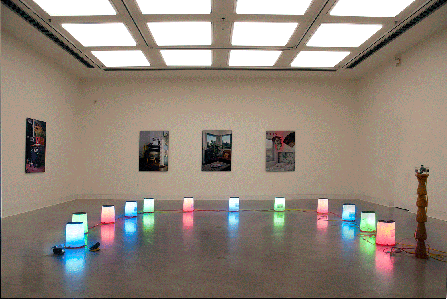 In Situ is an ongoing body of photographs documenting a series of sculptures in the collections and environments where they reside. This work situates these sculptures as an object in the world that is lived with and experienced as part of our everyday experience. The sculptures themselves merge cheap couture and high class swank but fail at useful functionality. These sculptures are finished when they become an image that disrupts the style of a home design photograph.