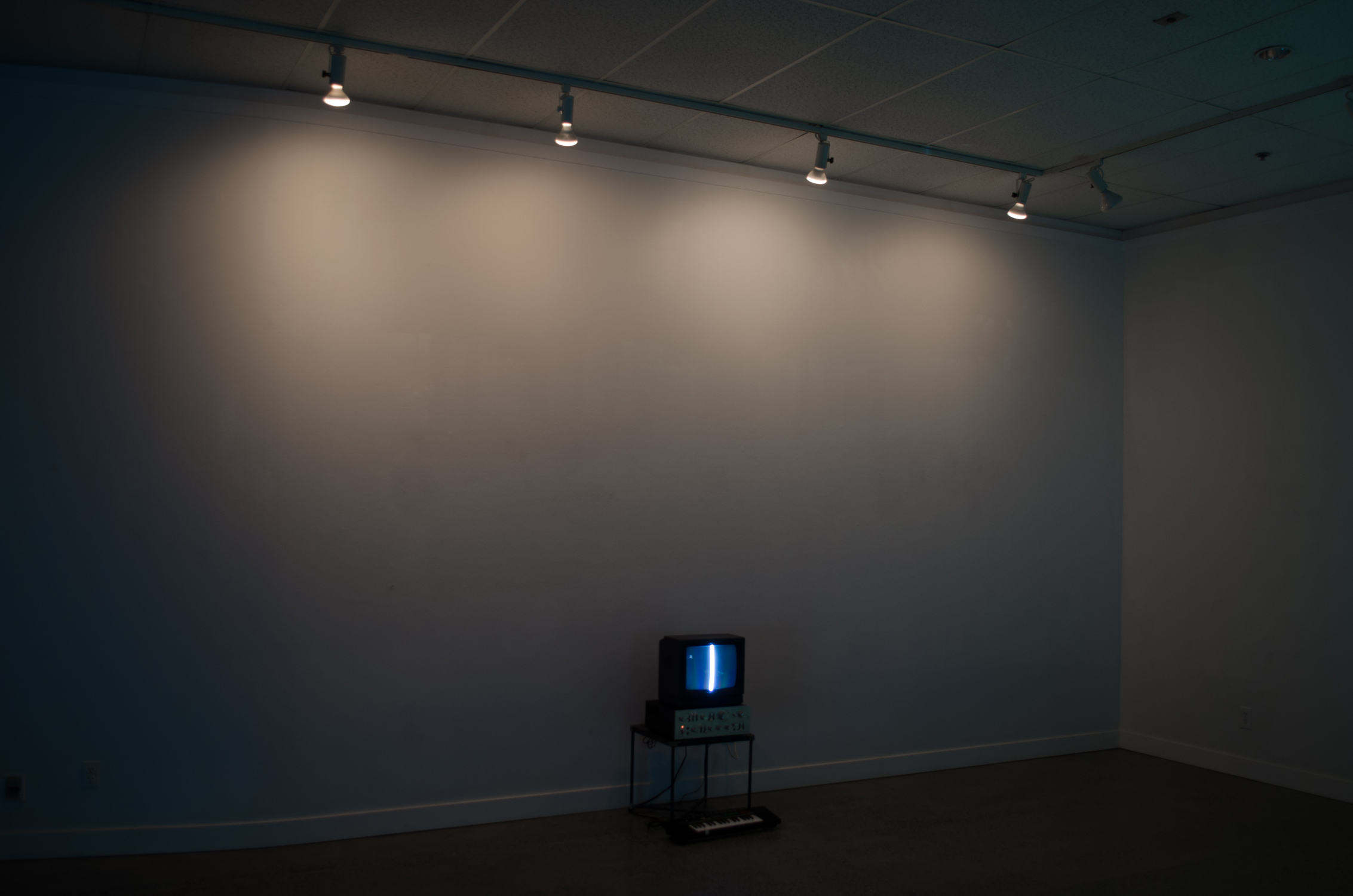 The exhibition that followed, The Descent & The View, takes its name from Plato’s Allegory of the Cave, where a group of chained prisoners are only able to see the shadows cast from the world outside the cave. They are unknowing viewers of images without the means of seeing the objects which create the shadows. In Plato’s allegory, Socrates and Glaucon ponder a freed prisoner ascending out of the cave, able to view the illuminated world that caused the shadows that they perceived as reality. Alternatively, for this exhibition, the viewer descends into a “black-box” gallery and views images that have been altered by the devices that create them.